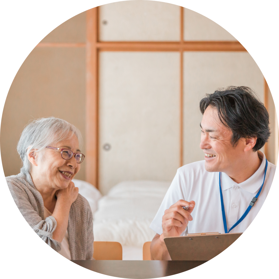 医師によりマッサージの必要性が認められた方を対象とし、ご自宅や介護施設に